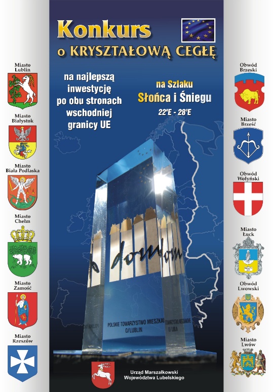„ANATEX" Kryształową Cegłę otrzymał za inwestycję biurowiec WPRB „ANATEX". Nasza siedziba tym razem została dostrzeżona i nagrodzona przez kapitułę konkursu, którego głównym celem jest pobudzanie aktywności ekonomicznej, gospodarczej i obywatelskiej regionów Europy Wschodniej poprzez promowanie i dokumentowanie działań w zakresie rozwoju regionalnej infrastruktury, budownictwa i architektury. Założeniem konkursu jest poprawa jakości i estetyki budowli, przywracanie miastom ich dawnej świetności dla zachowania europejskiego dziedzictwa kulturowego oraz: - wdrażanie prorozwojowej polityki mieszkaniowej i budowlanej na rzecz regionów po obu stronach wschodniej granicy Unii Europejskiej, w wymiarze twórczego wykorzystania wiedzy architektów, konstruktorów i kadry inżynieryjno-technicznej z ich znajomością nowoczesnych technologii i materiałów budowlanych - Podniesienie jakości przestrzeni zabudowy, wprowadzanie nowych myśli w kształtowaniu ładu i porządku urbanistycznego - wyłanianie wyróżniających się pod względem architektonicznym i funkcjonalnym obiektów zgłoszonych do konkursu i nagrodzenie ich realizatorów ( inwestor, biuro projektowe i wykonawca ) - doskonalenie wizerunku, wzmacnianie konkurencyjności i wyrazistego oblicza regionów po obu stronach wschodniej granicy Unii Europejskiej.